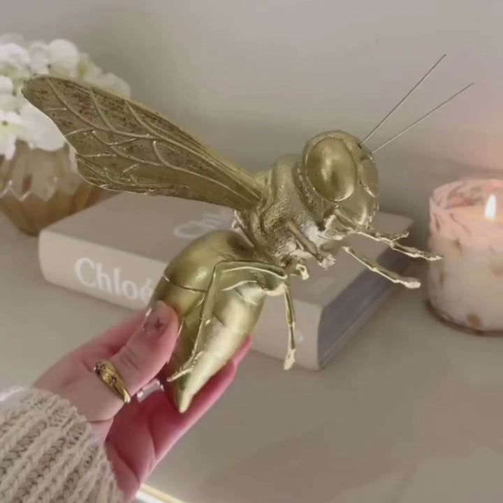 A beautiful gold bee ornament for your room. An impressive size at 17cm long, this gold bee is a beautiful statement piece for a shelf or sideboard!